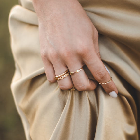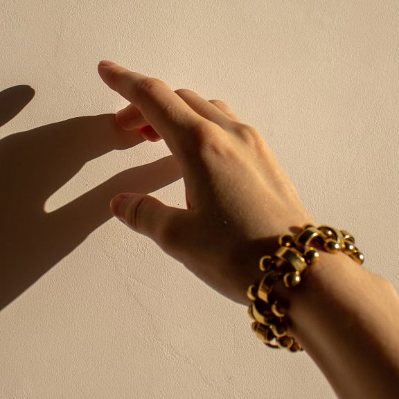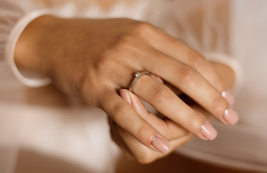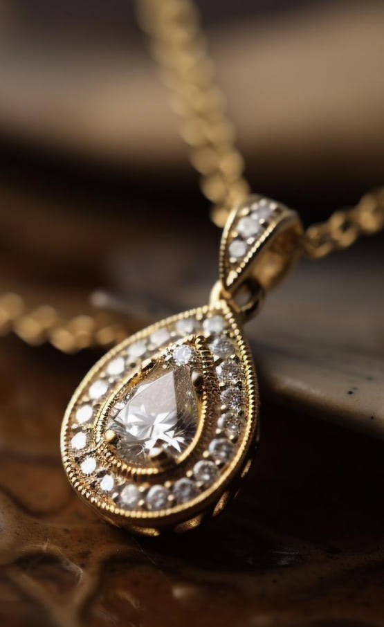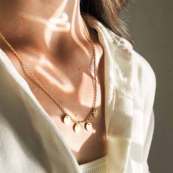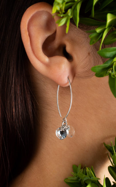 A woman wears both jewelry and fragrance and both recall happy moments of her life
